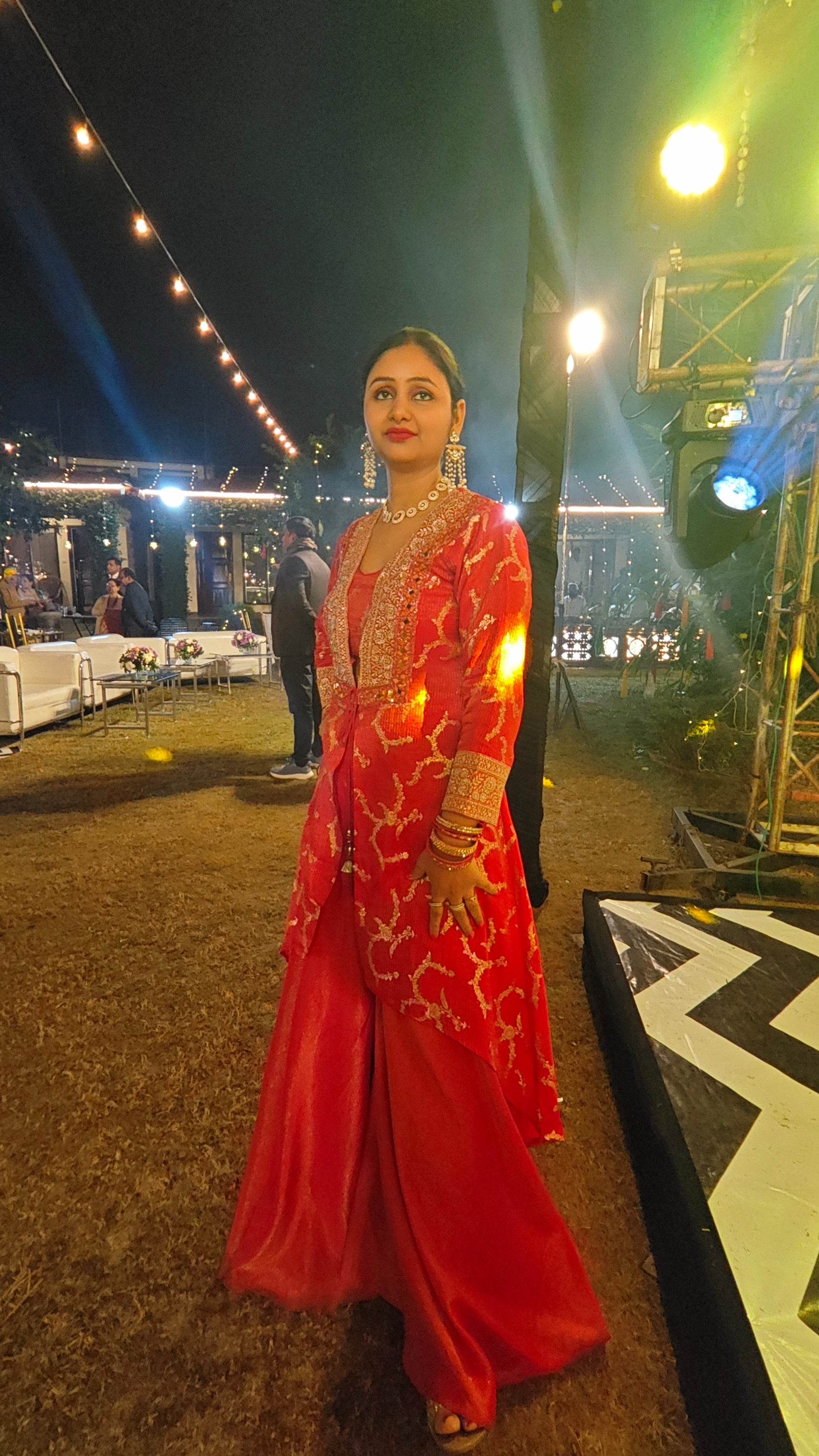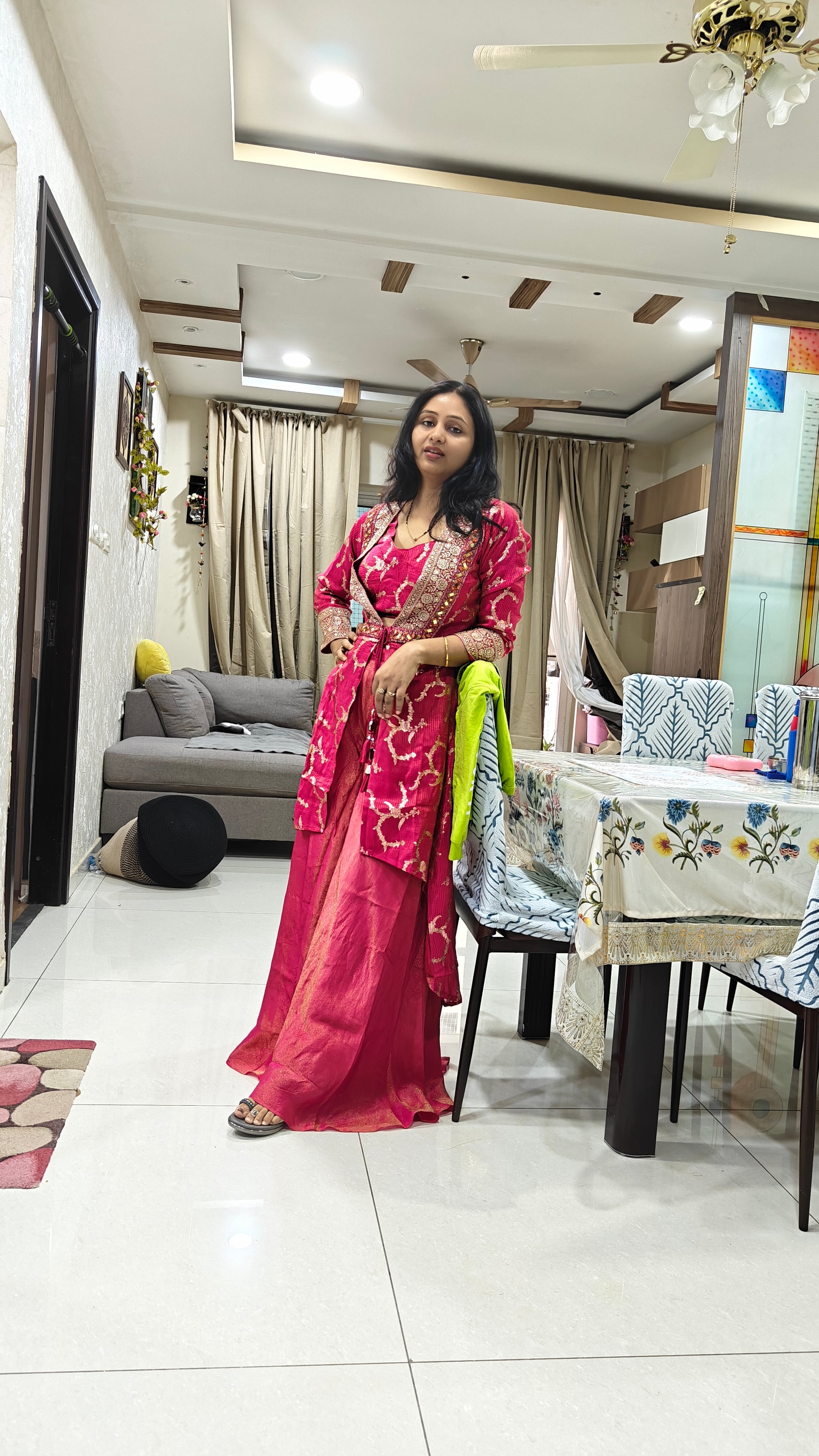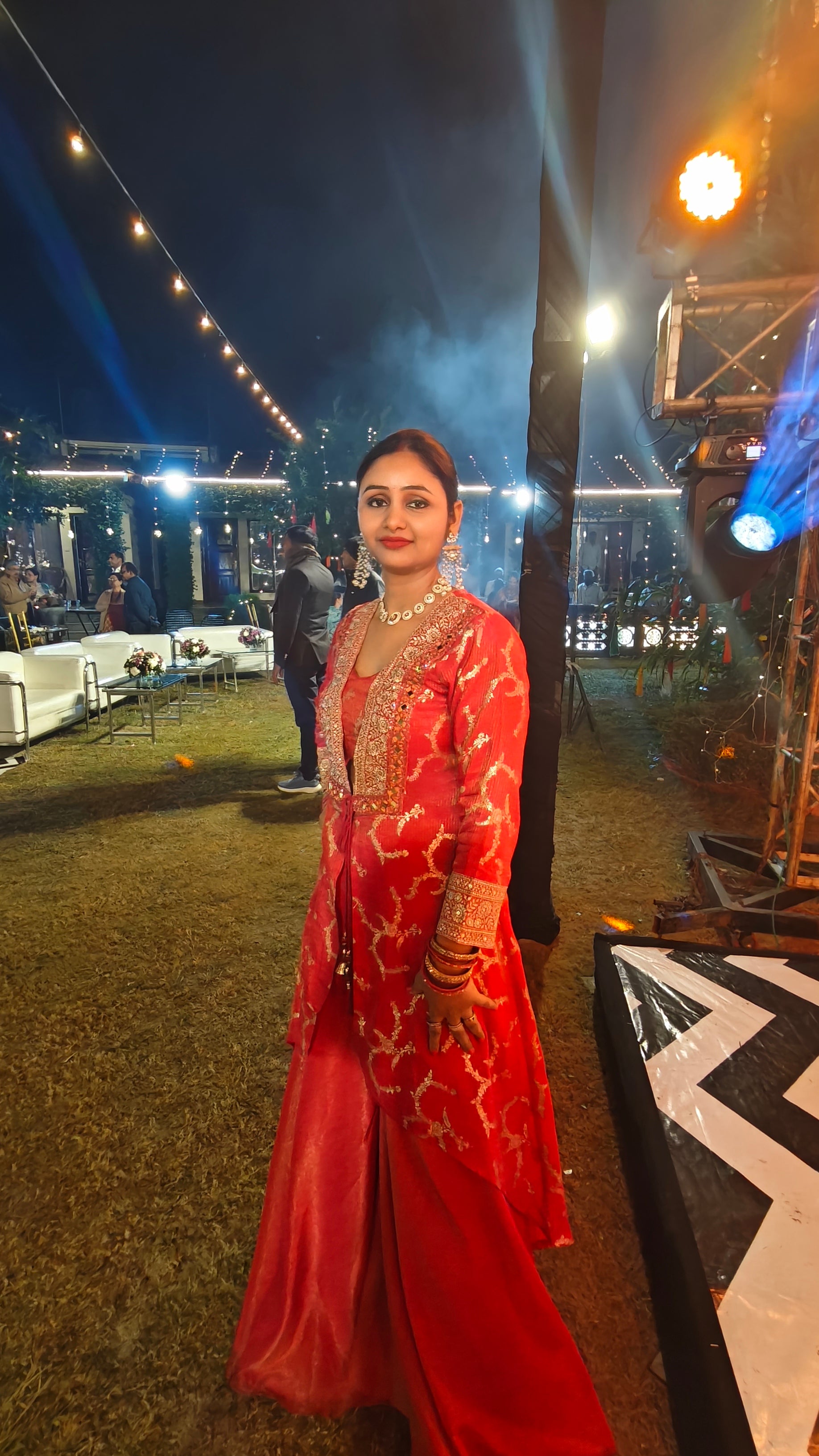 Key Features: • Fabric: Premium silk-blend with gold zari work • Style: Indo-western long jacket with inner kurta • Color: Vibrant red with gold embroidery • Occasion: Wedding, Sangeet, Festive, Party • Sleeves: Full sleeves with embroidered cuffs • Available Sizes: M, L, XL, 2XL